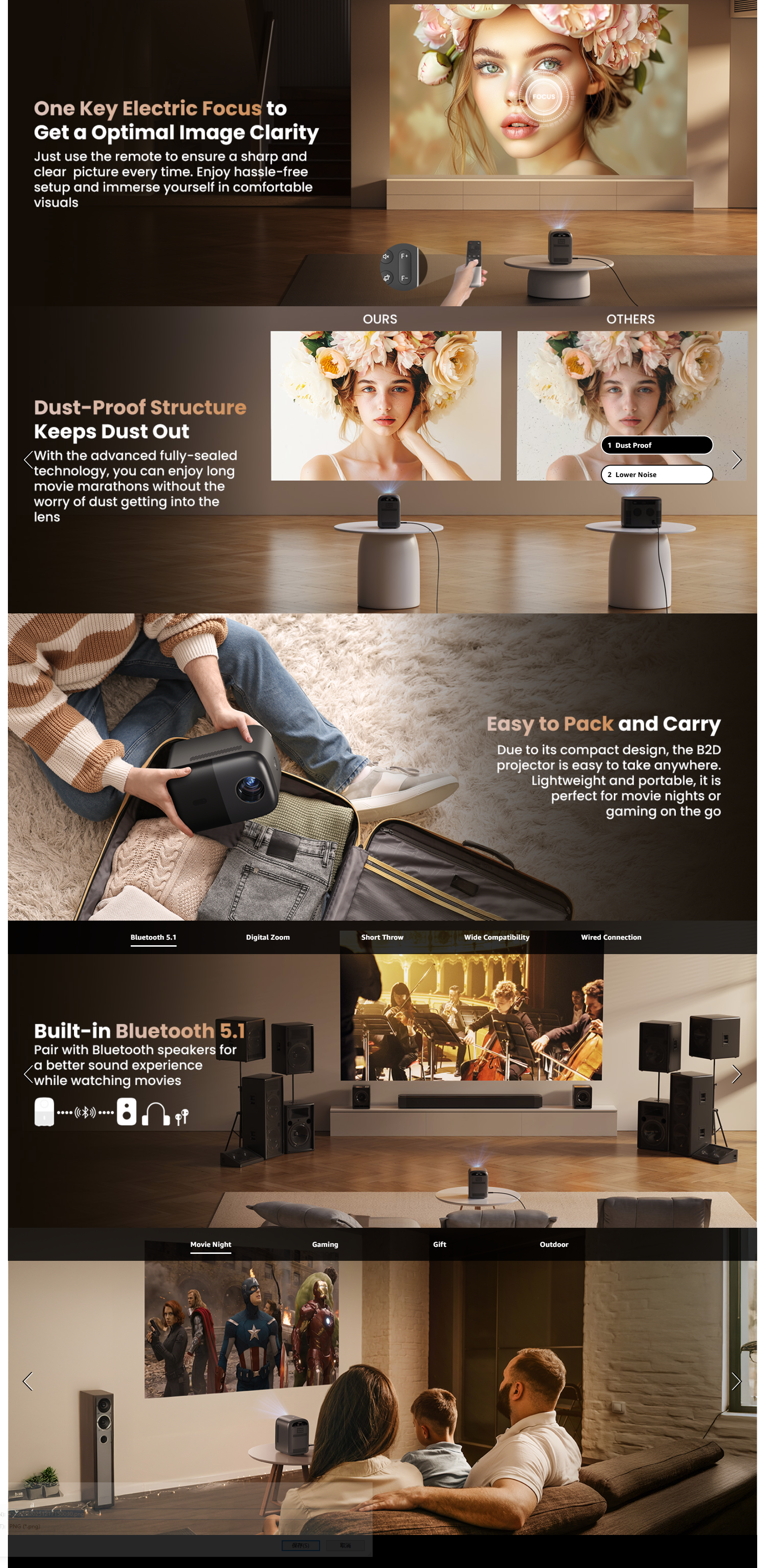 GROVIEW Mini Projector Bluetooth, Fully Sealed Portable Projector